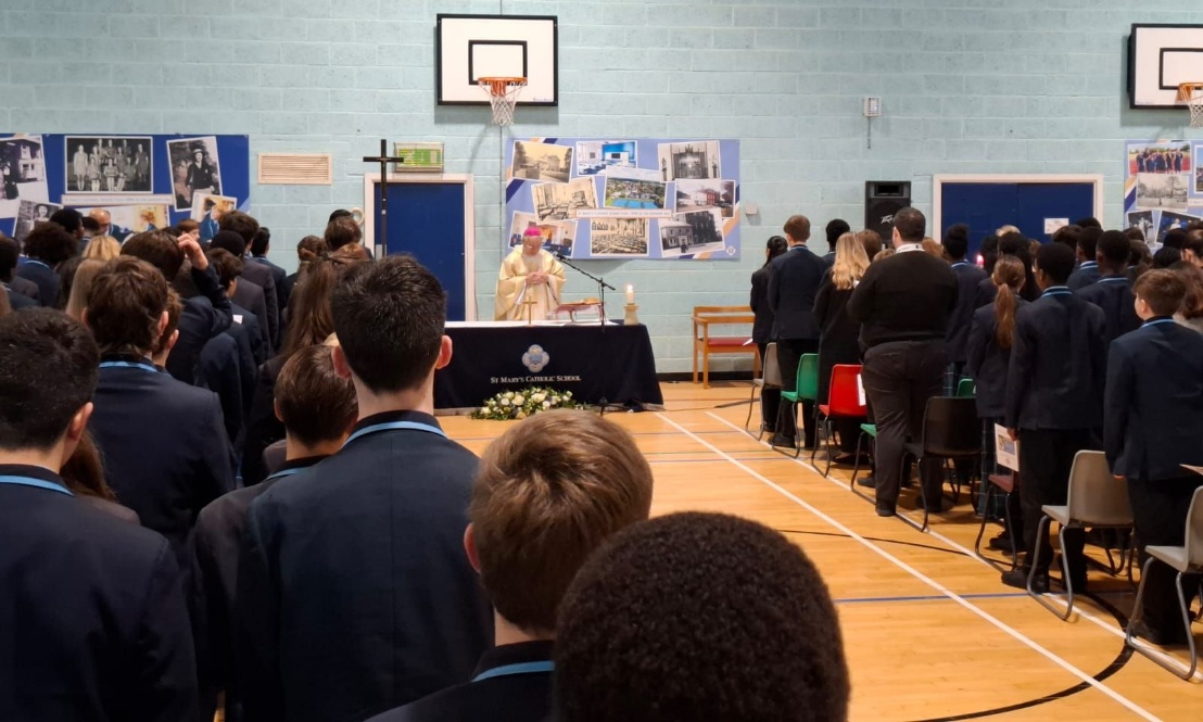 The school community of St Mary’s Catholic School in Bishop’s Stortford came together in a spirit of gratitude and celebration yesterday as the school marked both the 130th anniversary year of the school and the Feast of the Immaculate Conception. The whole-school Mass, led by Bishop Paul, was a deeply moving and memorable occasion—one that highlighted the unity, faith, and vibrant spirit that define our school.