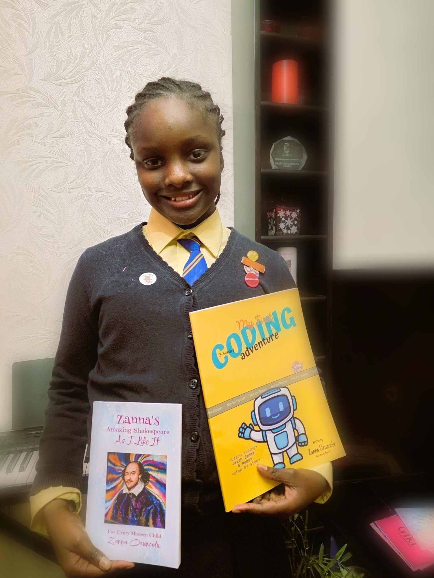 The young author Zanna published her first book, Zanna’s Amazing Shakespeare: As I Like It, when she was just seven years old. It began as her highly commended entry for the national Shakespeare Week competition in 2023, which was later featured in the Shakespeare Birthplace Trust’s online exhibition. The Trust has since selected her original manuscript for its museum collection. Encouraged by this recognition, Zanna expanded her idea into a full-length book that reimagines Henry V in a fun, modern context, blending gaming, music, YouTube references, and characters from various Shakespeare plays. The book also features puzzles, quizzes, word searches, and drawing tasks to help children learn through play.